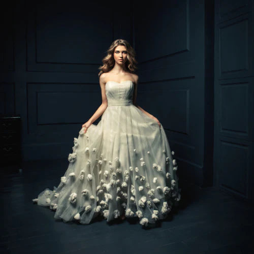 Mais au-delà de l’esthétique, ces robes offrent un avantage subtil : elles mettent en valeur toutes les morphologies. Le corsage ajusté affine la taille, tandis que la jupe volumineuse donne une silhouette harmonieuse et gracieuse. Vous marchez dans l'allée, et chaque pas attire les regards émerveillés de vos invités, qui savent, à cet instant précis, que ce jour est votre moment de gloire.